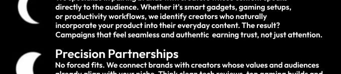 At Crescent Linked, we connect driven brands with impactful creators in tech, commentary and gaming. Fostering meaningful campaigns that drive authentic growth and real results.